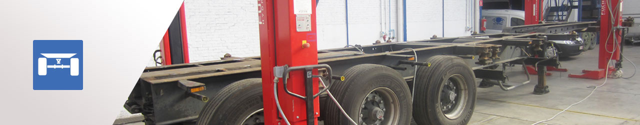 Onze chassisrichtbank van het merk “Celette” is 20m lang en heeft een duwkracht van 30 ton. De richtbank voor truckcabines maakt het stellen van cabines mogelijk tot op 1 millimeter nauwkeurig.